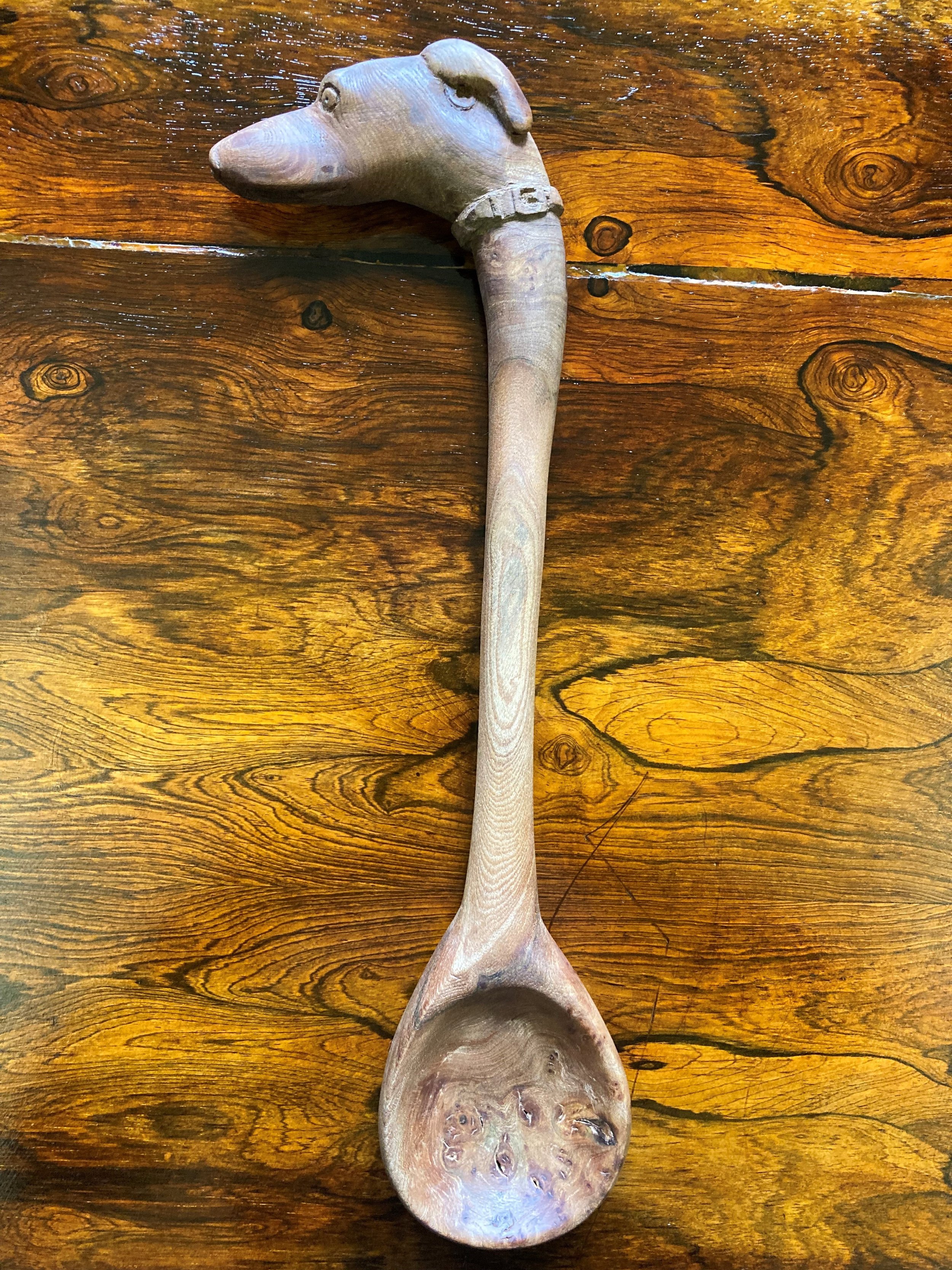 Robert is widely known for his exceptional carvings, most notably for his beautiful walking sticks and decorative spoons. He has exhibited his sticks, spoons and other carvings at various shows, and won many prestigious national awards. Robert generously carves spoons and sticks for our alumni auction events. Charles III owns one of Robert’s carved walking sticks, so if you’re the proud owner of a Denton spoon or walking stick, you’re in good company!