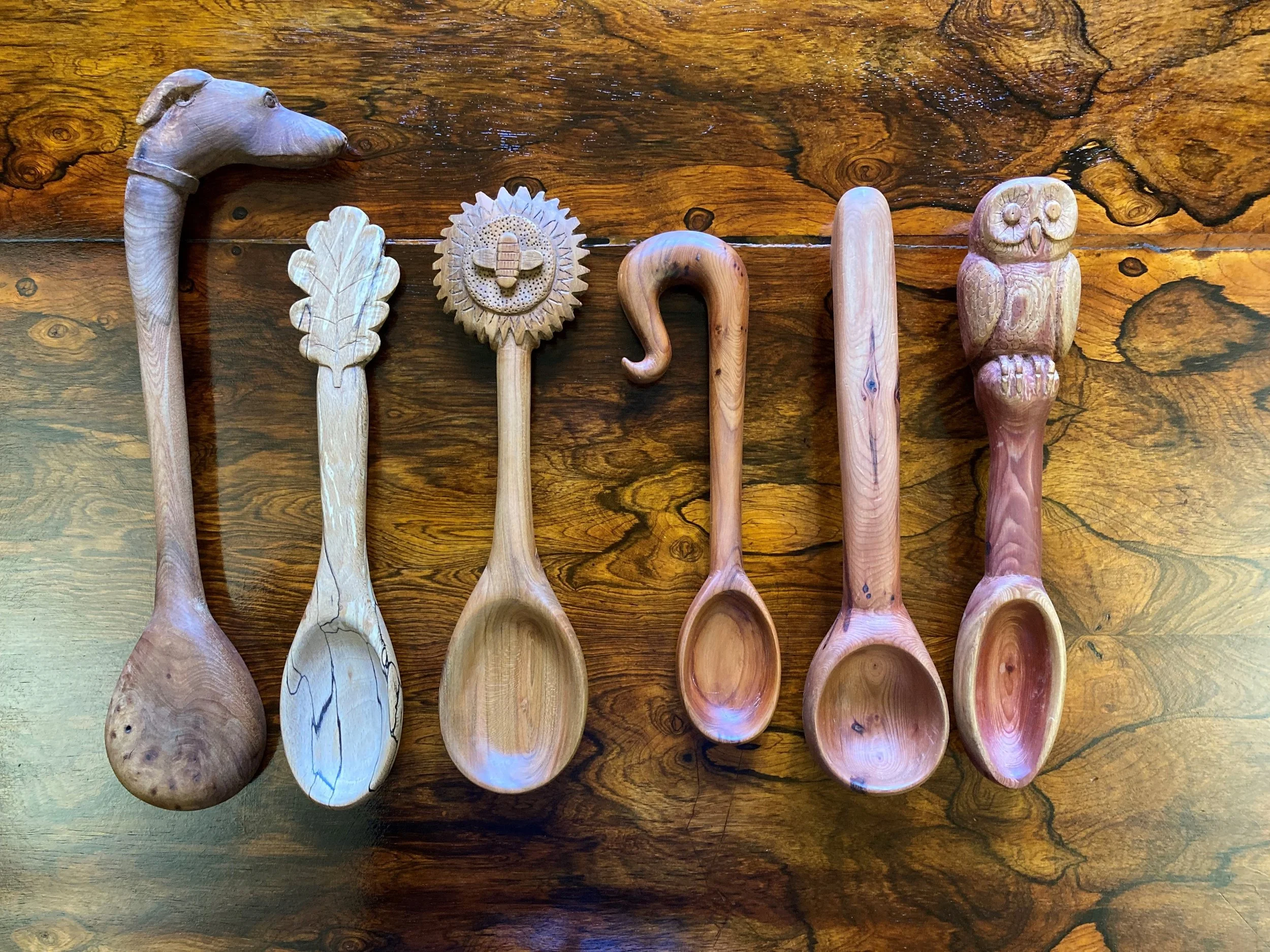 I enjoy carving. I find it very relaxing. My father used to work with wood, so wood carving has always been in the family. It’s been passed down to me. I carve walking sticks and spoons. I get all of my ideas from nature. It’s lovely sitting out at night, carving while listening to the owls calling. It’s so peaceful.